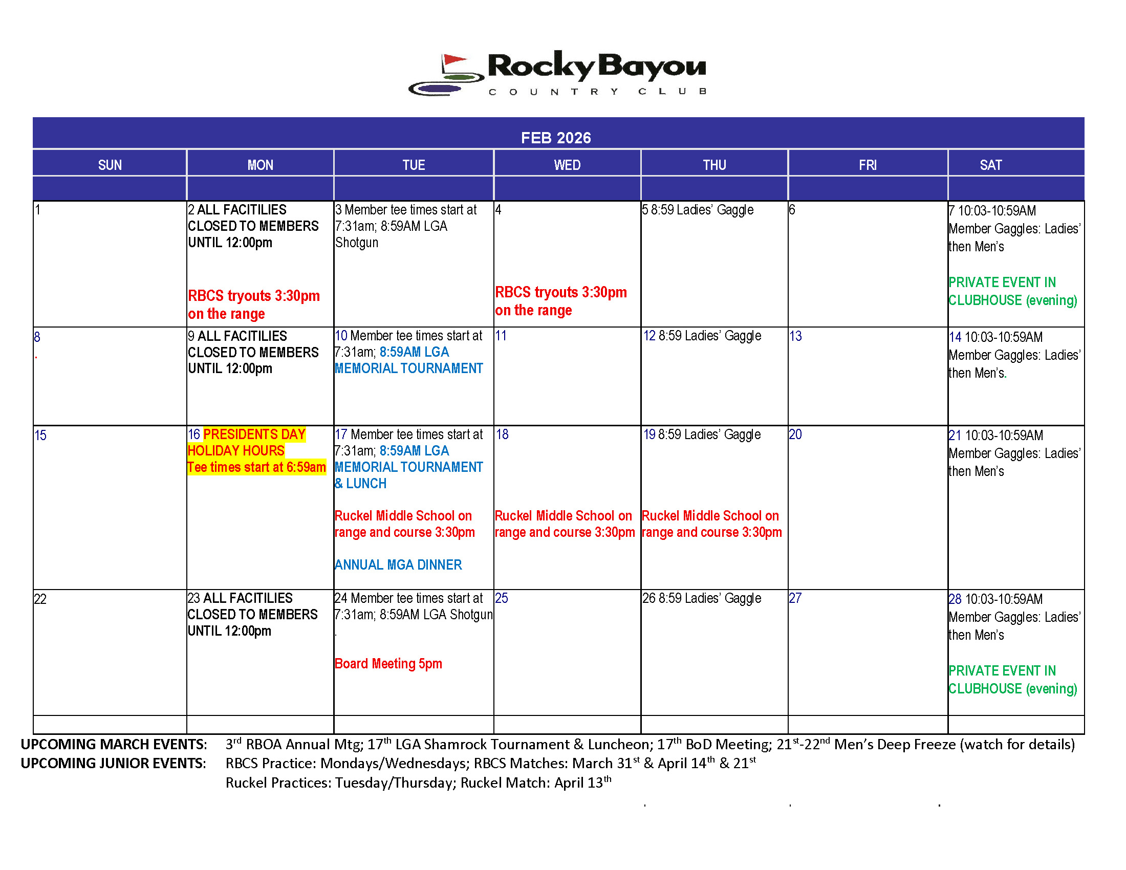 Rolling hills, sprawling oaks and stately pines—Rocky Bayou Country Club features 115 acres of championship golf unique to Northwest Florida. We offer 18 holes of challenging play with wide fairways, perfectly managed greens, and five spring fed lakes.