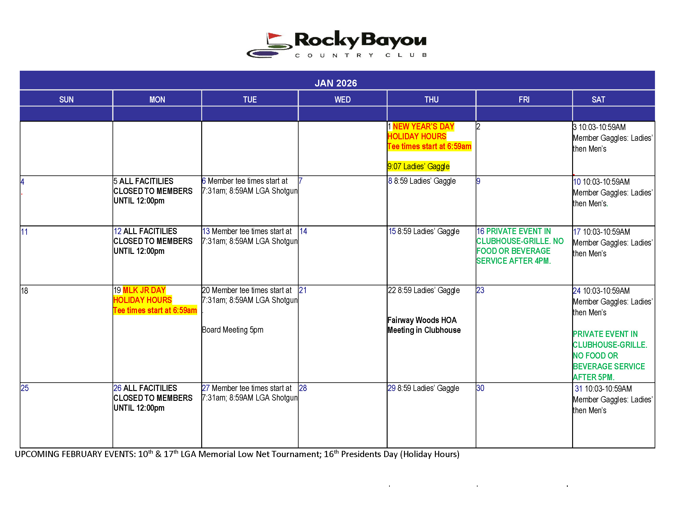 There was still much work to be done. The swimming pool and tennis courts were not finished; the rough areas needed to be cleared; final touches to the club house were needed, but so many people had done so much with so little that one could only stand amazed at the reality of it all. It was great and would only get better. For years to come Rocky Bayou Country Club would provide a lot of people a place to enjoy the great game of golf. For those who preferred to play tennis or go swimming, they too could enjoy themselves. And finally a club house was now available for social activities for groups large and small. A dream had come true. Plaudits and kudos to a relatively small group of Twin Cities residents for a work well done was the order of the day.