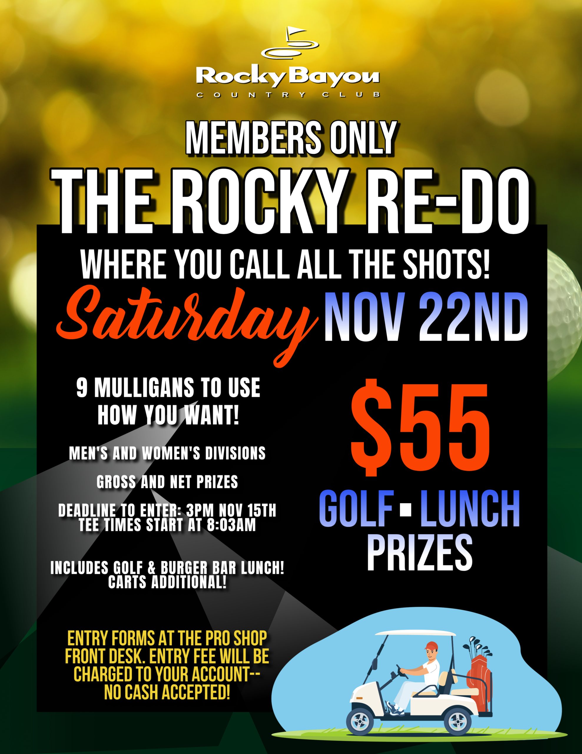 2025 ROCKY RE-DO! November 22nd. Sign up at the Pro Shop front desk no later than 3pm, November 15th